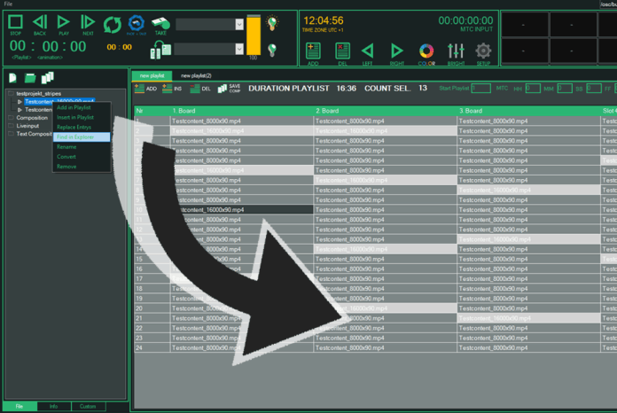 LED Board Control is specifically made to play out your advertising content to your led board systems at live sport events. Due to the process of content production, the LED Board content is produced as a loong video stripe. Normally someone had to remap the content in after effects (or similar software) to fold it into a 16:9 format, so it matches the LED Board mapping. This step can be left out with LED Board Control, because trough its auto wrapping mode it can fold the content live, instead of pre render it (8k / 16k / 32k content wide depends on graphic card).